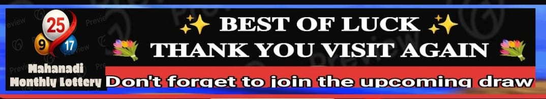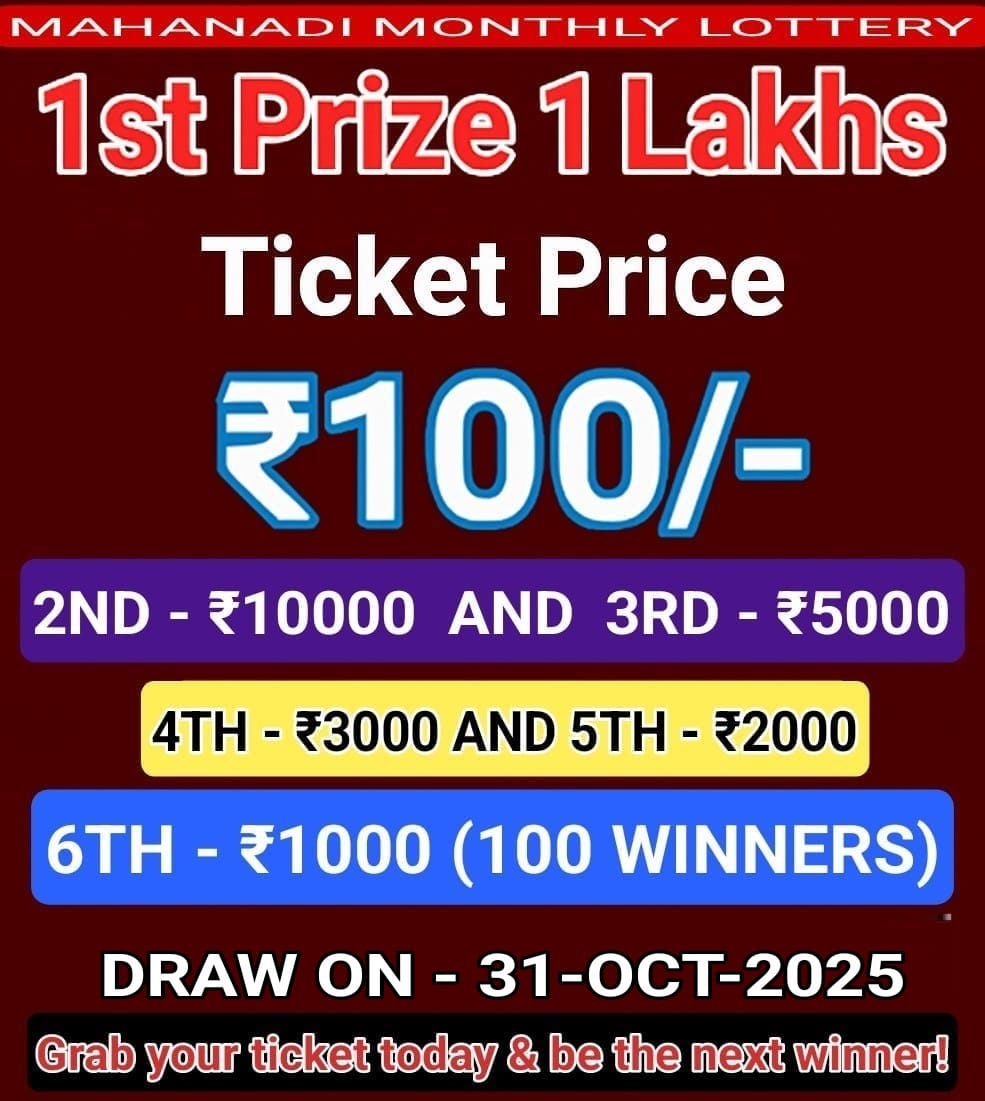ଆସନ୍ତା 31 ଅକ୍ଟୋବର 2025 ସନ୍ଧ୍ୟା 5:00ରେ ଆଧିକାରିକ ଲାଇଭ୍ ଡ୍ର’ ଭିଡିଓ ଏଠିରେ ଦେଖନ୍ତୁ। ନିର୍ଦ୍ଧାରିତ ସମୟରେ ଏହି ପୃଷ୍ଠାରେ ଭିଡିଓ ପ୍ରଦର୍ଶିତ ହେବ।